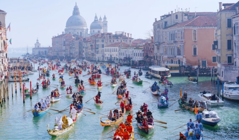 Conhecido por suas máscaras icônicas e trajes luxuosos, o Carnaval de Veneza transporta os visitantes para a atmosfera da aristocracia renascentista. Desfiles, bailes de máscaras e eventos sofisticados fazem parte da programação.